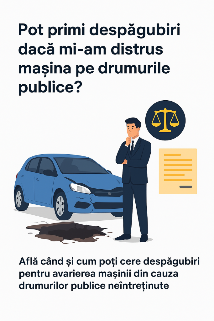 Conducătorii auto din România se confruntă frecvent cu gropi, denivelări sau porțiuni de drum prost întreținute. Dincolo de disconfort, aceste probleme pot cauza avarii costisitoare ale vehiculului precum roti distruse, elemente de caroserie distruse, avarierea sistemului de directie s.a.m.d. Întrebarea firească este: pot obține despăgubiri de la autorități pentru pagubele suferite? Cine răspunde pentru drumurile […]